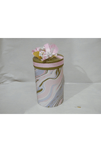 Bonita caixa grande em cartão tema mármore rosa 12x12x19cm, recheada com 600gr de deliciosas amêndoas. Decorada com lindo laço gravata em fitas tecido nos tons cor de rosa e branco, um pequeno arranjo de lindas flores artificiais.
